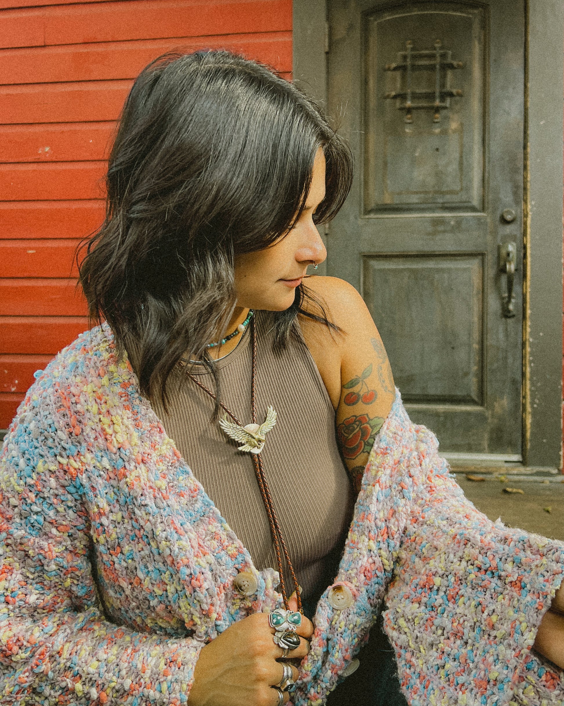 This bolo tie is our take on a western classic. Featuring a huge brass eagle casting on a string of brown genuine leather. It has a lever tension back, and gold plated steel tips.